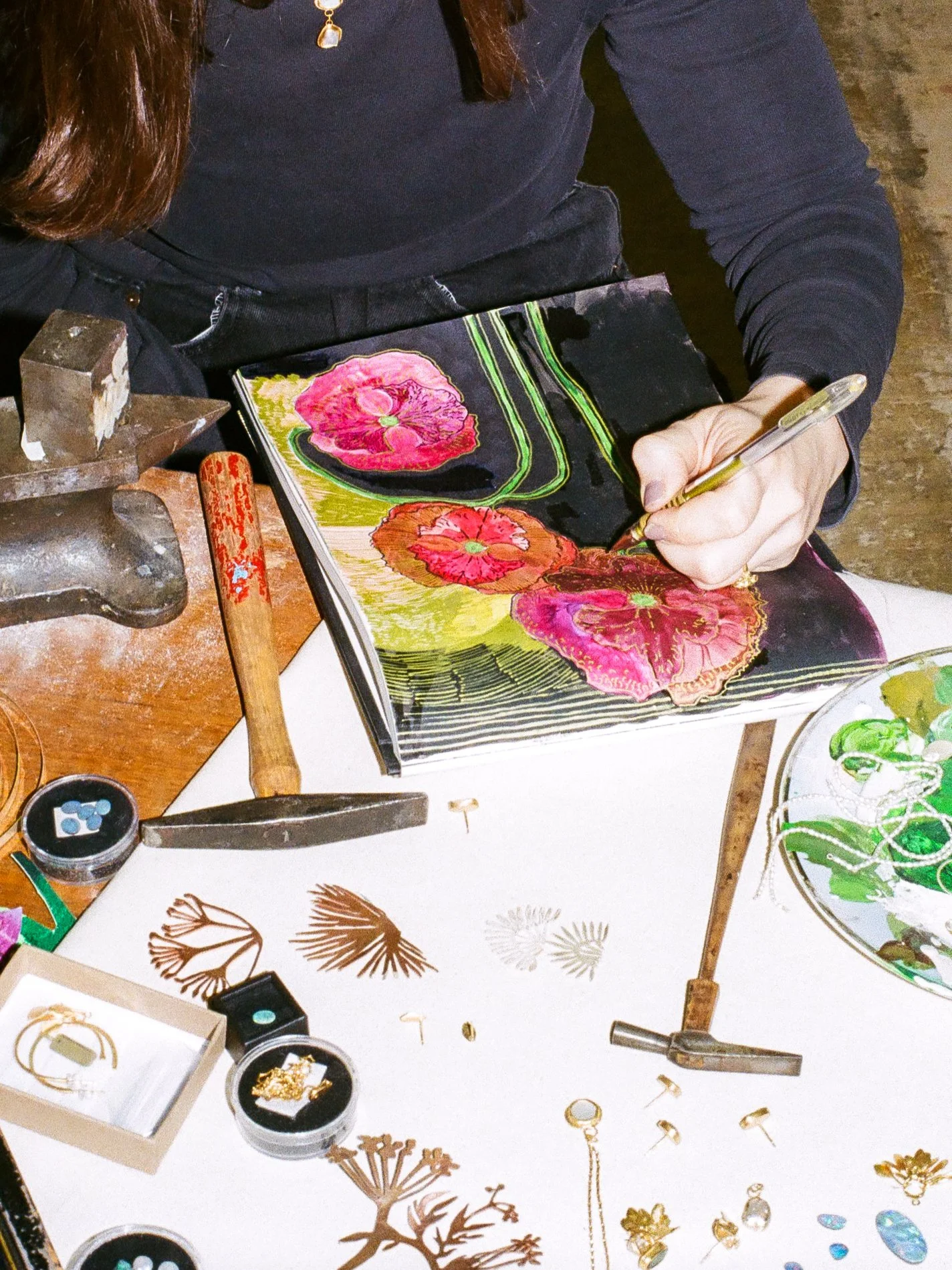 Susan MacLeod is an award-winning jewellery designer and maker, working from her studio at Cockpit Yard in Bloomsbury. But before any piece takes form in metal, it begins on paper.